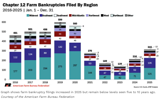 While farm bankruptcies in 2025 were higher than in other years over the past decade, five of the six highest years in that decade occurred while Trump was president.